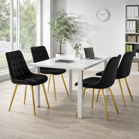 Nevi Express - Pack 4 Sillas Comedor Capitone Felpa Patas Doradas