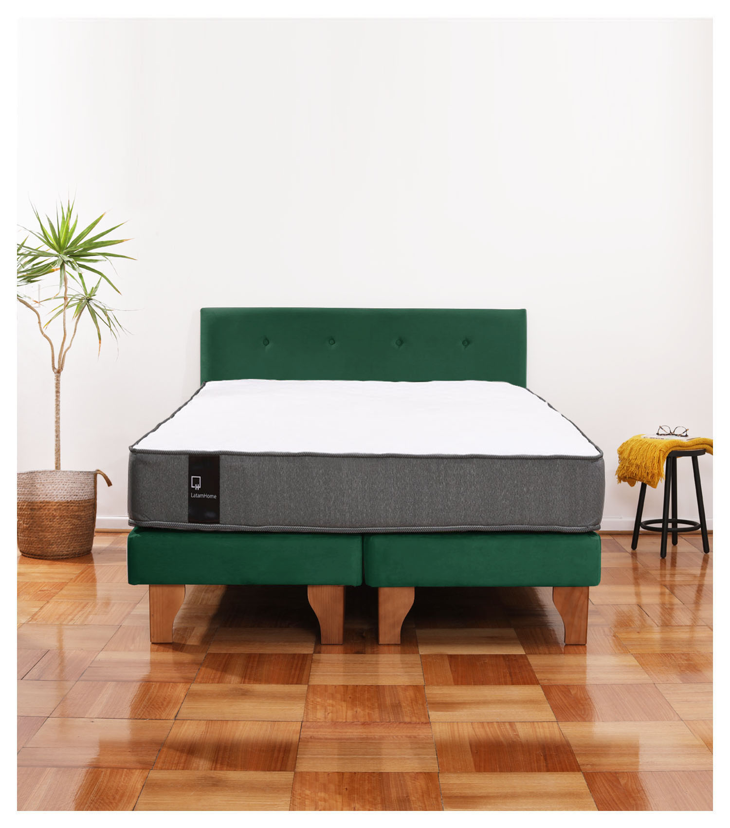 Latam Home - Cama Europea Zen Best 2 Plazas Colchon Resortes Base Dividida + Respaldo Tela Verde | Lider Electrohogar
