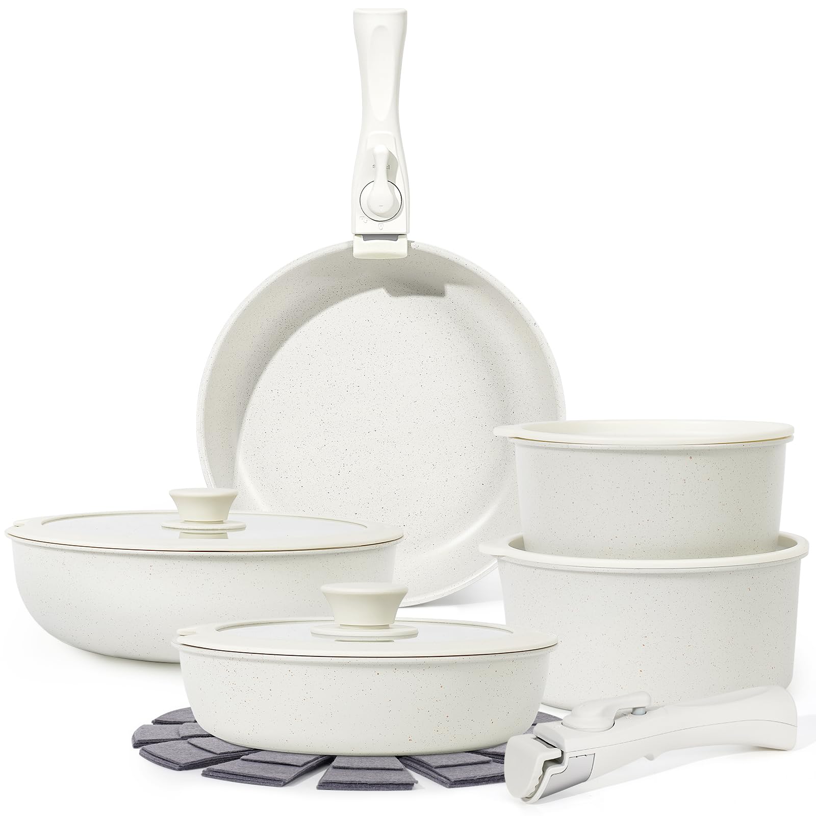 Juego De Utensilios De Cocina Soday, 17 Unidades, Antiadherentes Con Mango Desmontable, Color Blanco