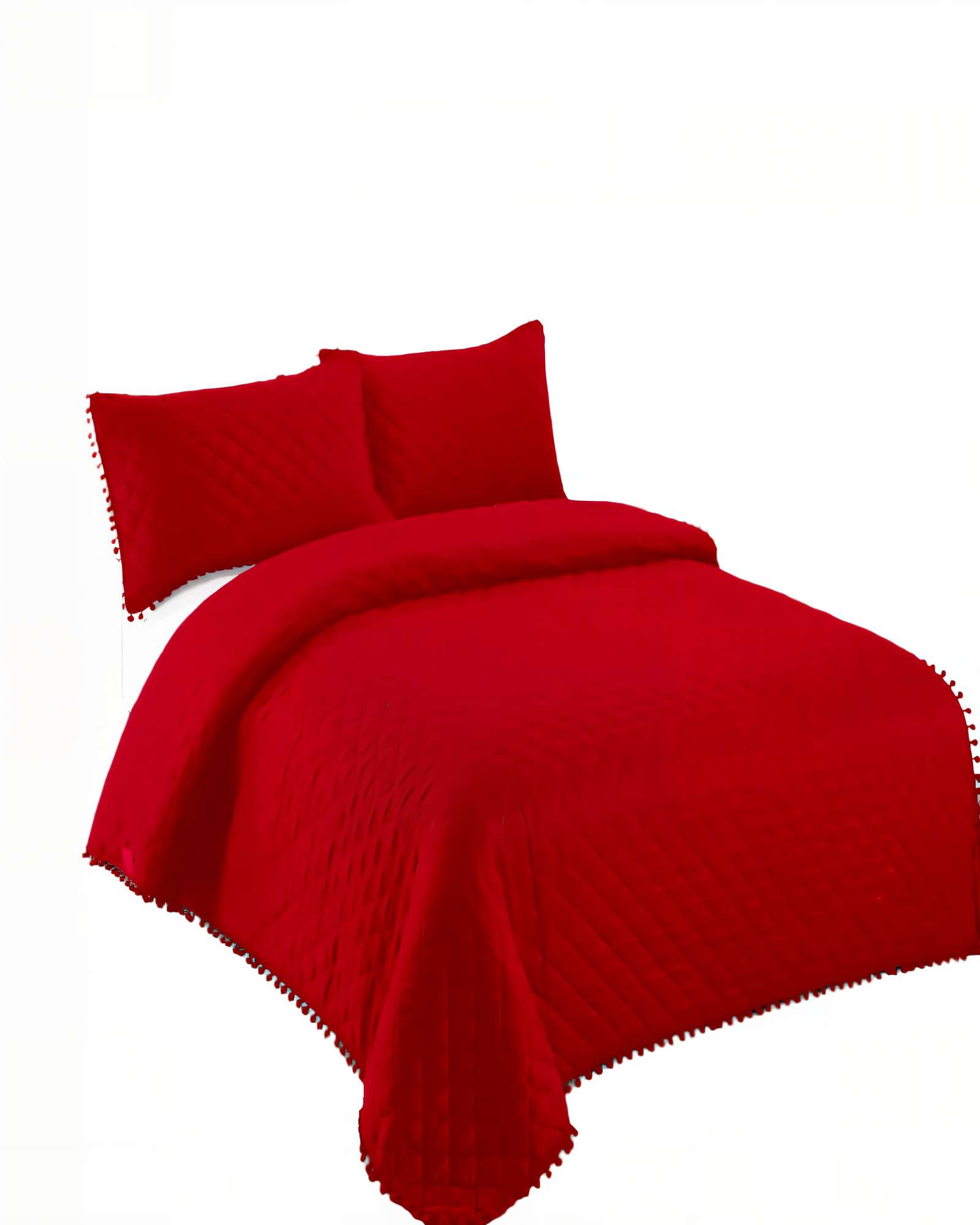 Cubrecama quilt de verano 1 5 plazas con pompon color rojo