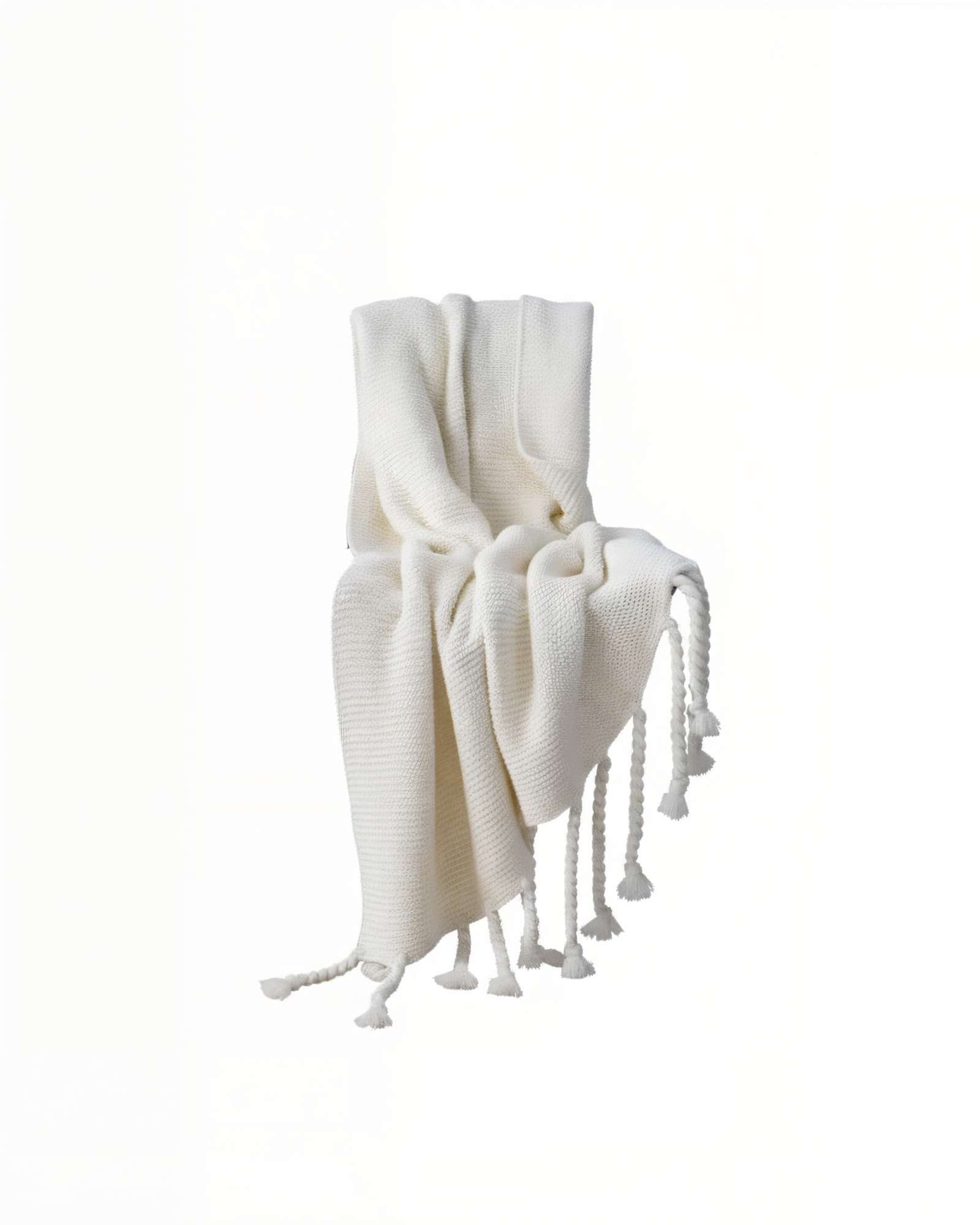 Genérico - Manta Con Flecos De Soga Trenzados Chenille Color Blanco | Lider Electrohogar