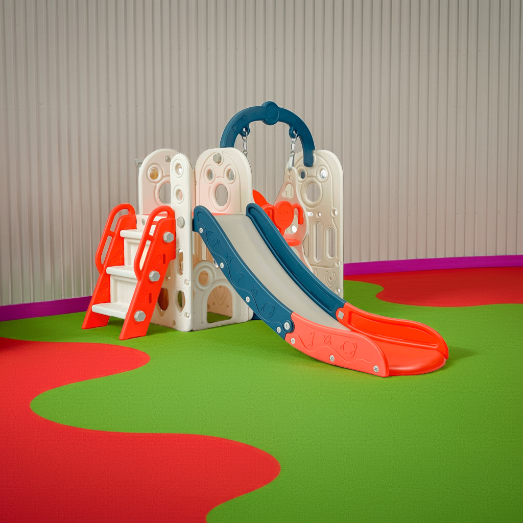 Mundo Online - Resbalín Columpio 3 En 1 + Aro Basket, Centro De Juegos Celeste
