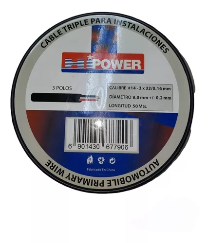 Cable 3 polos para instalacion automotriz 50 mts