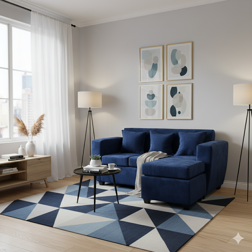 Deco Outlet - Seccional Kansas 3 1 Tela Azul