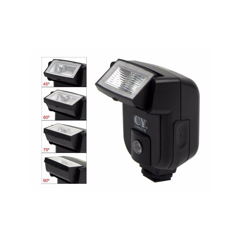 El mini flash yinyan cy-20 de estructura compacta, portátil y se puede utilizar para varias cámaras. el ángulo de inclinación ajustable de la lámpara es ideal para la fotografía con flash.
