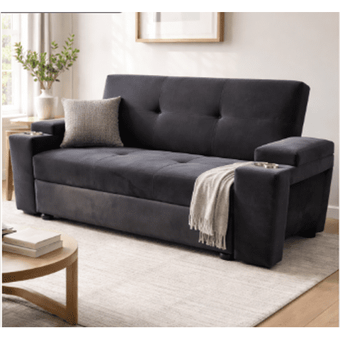 Camila Home - Sofá Cama 3 Cuerpos Felpa Negra 185 Cm Con Baúl Y Puffs | Lider Electrohogar