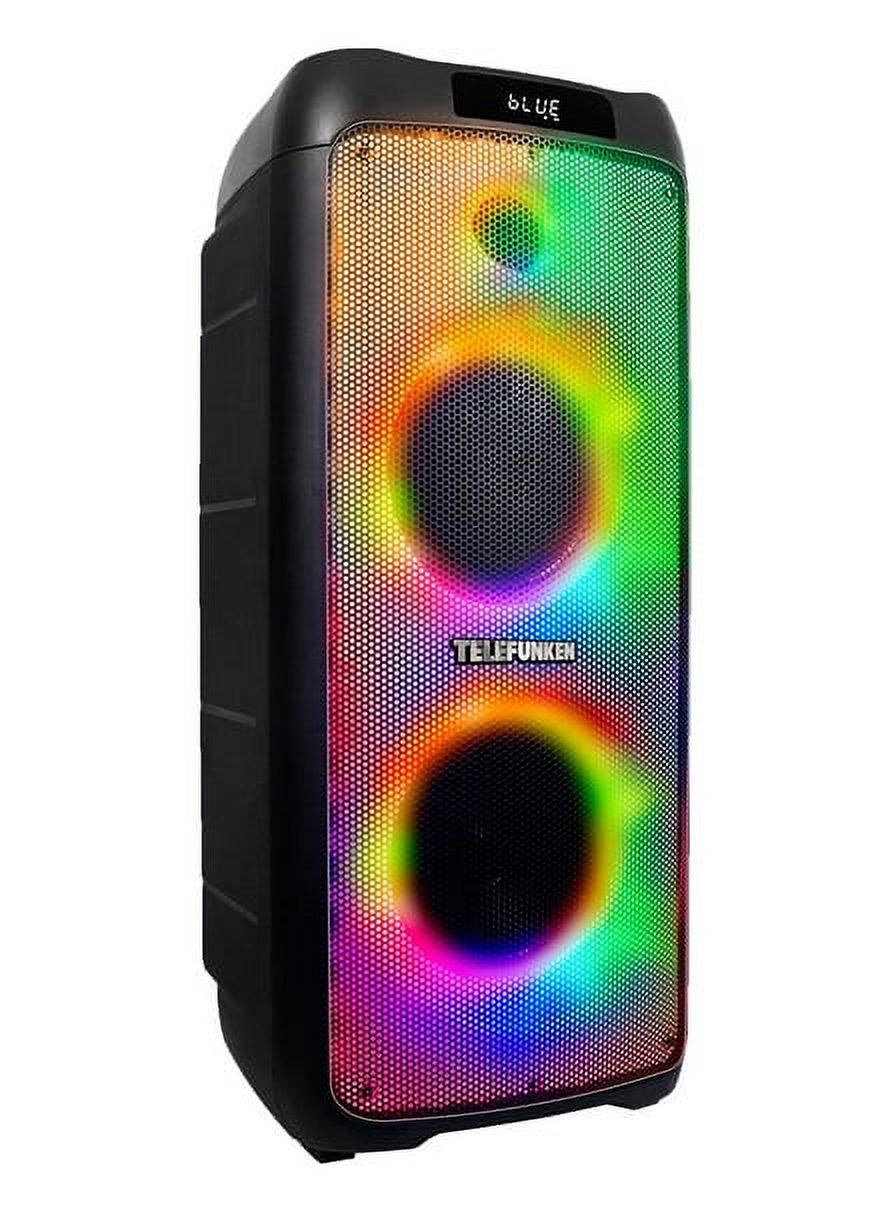 Ultrabox 8 de telefunken es un parlante tipo concert con batería incluida excelente para fiestas en casa, ya que posee luces led ultra brillantes y una potencia de 200w rms. cuenta con puerto usb y micro sd para música mp3 y conexión vía bluetooth para reproducir la música que más quieras desde un dispositivo móvil o tablet. su tecnología tecnología tws permite tener un verdadero sonido estéreo, incluye un control remoto y un micrófono con cable para realizar karaoke. este parlante cuenta con 8 efectos de sonido y perillas para ecualizar la música, además posee efectos de voz y 12 botones de configuración. caracteristicas: efectos dj x4 12 botones configurables 6 perillas de ajuste 20 botones retroiluminados 8 efectos de sonido dj 6 canales de entrada 2 bandas eq micrófono con cable control remoto batería larga duración ( 4 / 6 hs aprox. según potencia ) led indicador de carga de batería panel frontal con luces audiorítmicas
