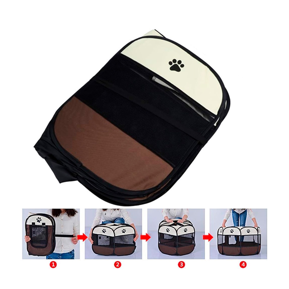 Portátil y plegable esta carpa para mascotas es fácil de transportar y se puede instalar o desmontar en minutos, lo que la hace perfecta para actividades al aire libre.