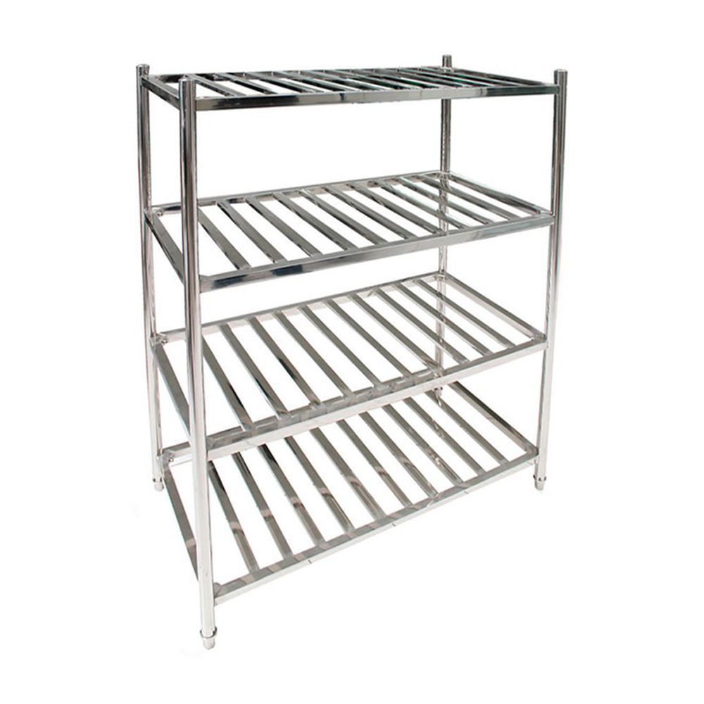 Estantería tipo rejilla de 4 niveles de acero inoxidable.