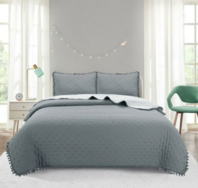 Top Lucky - Cubrecama De Algodonking Pompon Gris | Lider Electrohogar