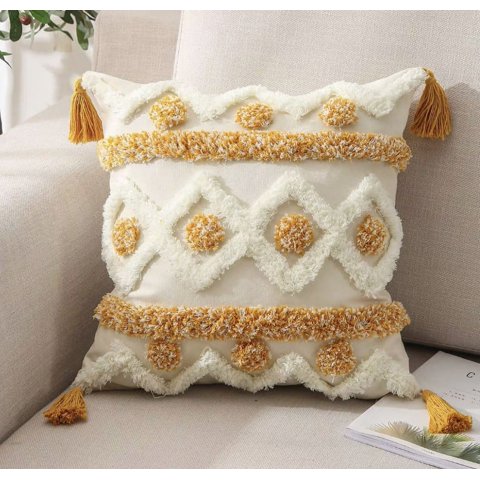 Homestore - Cojín Boho 45 Cm X 45 Cm Rombo Mostaza | Lider Electrohogar