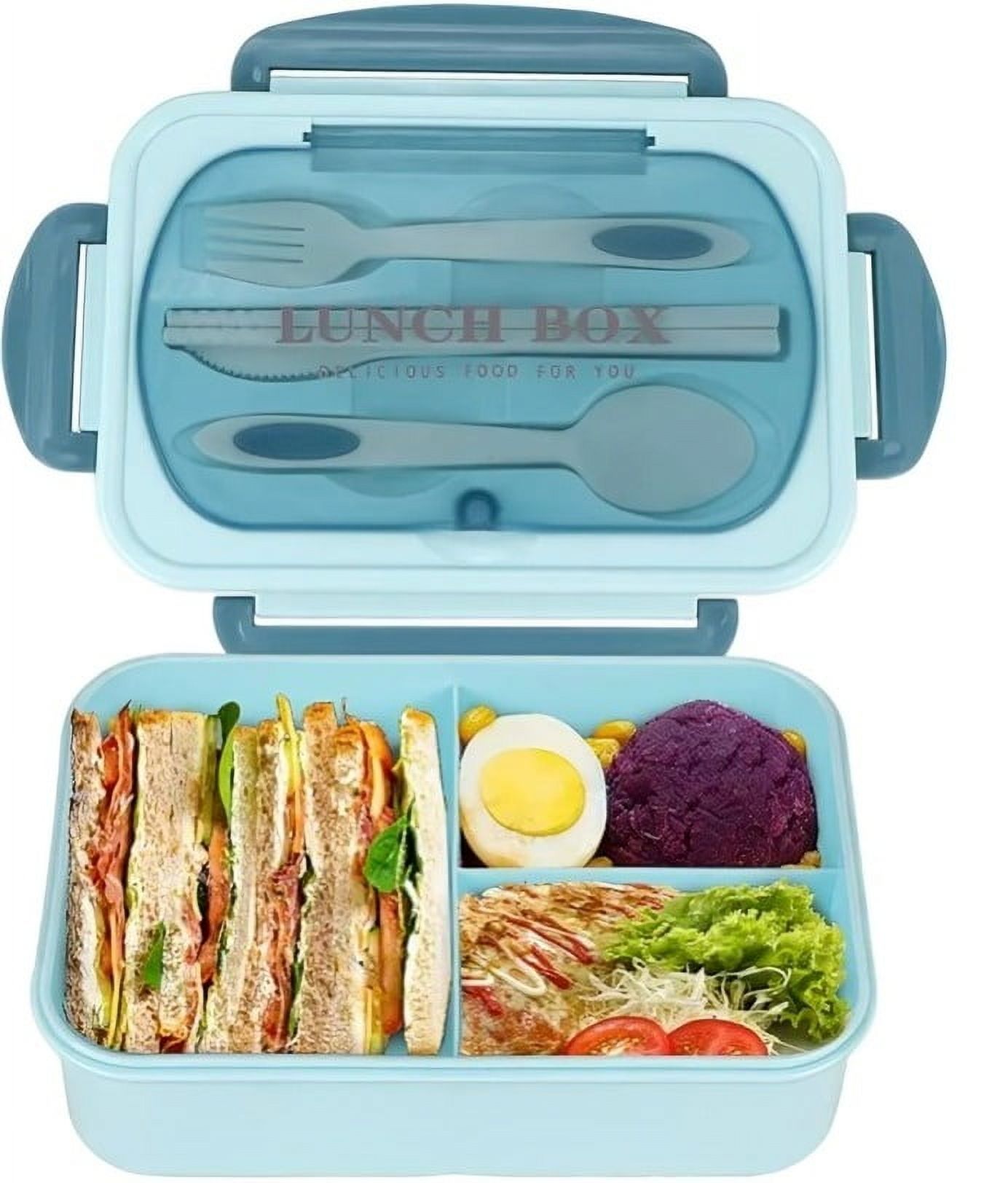 La lonchera tiene 3 compartimentos para mantener diferentes tipos de alimentos en todo el recipiente, manteniendo el equilibrio nutricional y el sabor original, por lo que tu preparación es más saludable y sabroso que la comida rápida, puedes ahorrar dinero en tu lonchera en una semana. las loncheras para adultos están hechas de materiales de seguridad de grado alimenticio, sin bpa; incluso pueden abrir o cerrar fácilmente el pestillo en la tapa, los utensilios incrustados en la tapa evitan perfectamente el contacto con tus alimentos y utensilios de olvido, diseño innovador realmente considerado. apto para lavavajillas y microondas: es fácil de usar, fácil de limpiar, soporta calefacción de microondas (tapa no incluida) y limpieza en lavavajillas (solo estante superior, se recomienda lavar a mano la tapa y los utensilios para evitar la deformación causada por la alta temperatura). a prueba de fugas y de alta calidad: la tira de silicona proporciona un buen sellado hermético para la lonchera, el sello exterior mantiene todo muy bien. por lo que no tienes que preocuparte por fugas de alimentos incluso cuando lo llevas durante largas distancias; y los 4 cierres fáciles de usar cuentan con un diseño de rodillo que aumenta en gran medida la vida útil. nota: los compartimentos internos no están completamente sellados entre sí, por lo que no se recomienda la comida con sopa. la lonchera tiene el tamaño perfecto para contener hasta 40.6 fl oz / 5.07 tazas de alimentos, pero se mantiene compacta y cabe fácilmente en tu bolsa de almuerzo para una fácil portabilidad.