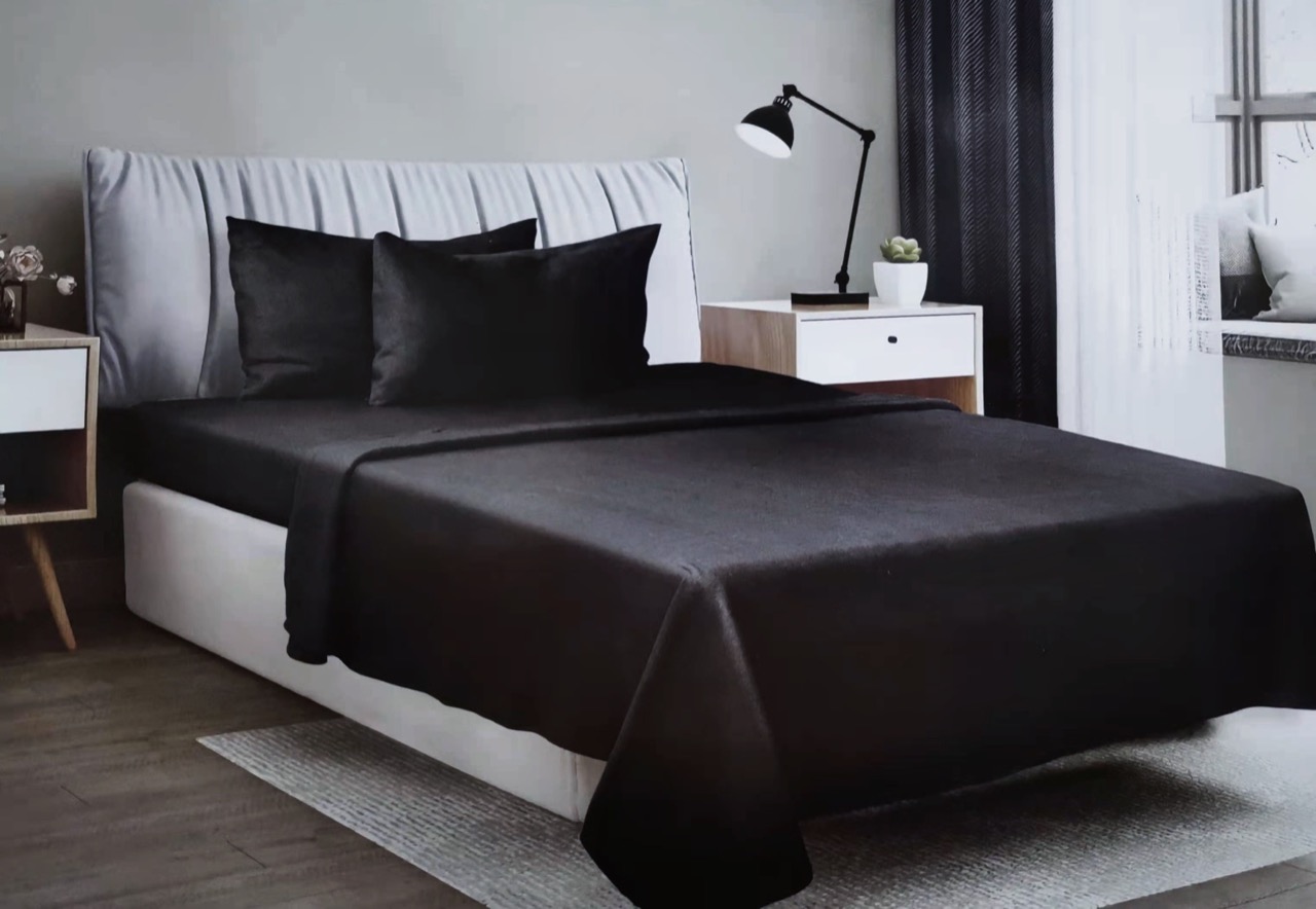 Bj Hogar - Juego De Sabana 1.5 Plazas En Color Negro 144 Hilos