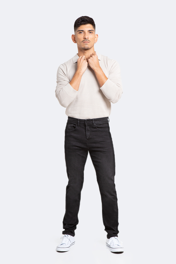 Jeans hombre slim negro liso