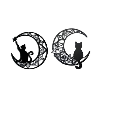 Cuadro Decorativo Figura Gato Luna Mdf 39*36cm X 2 Unidades