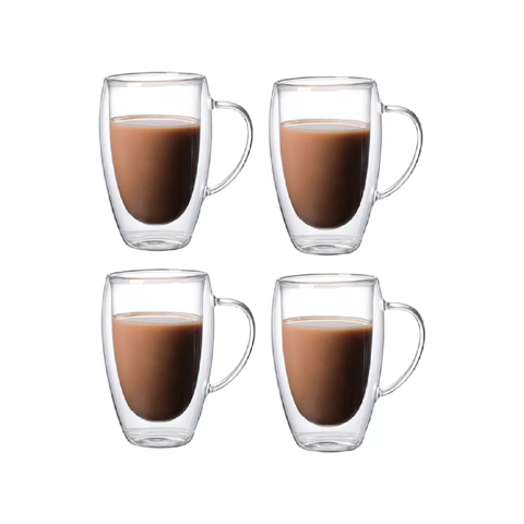 Importclick - Set 4 Mug Tazas Café Té Doble Pared Vidrio 350 Ml | Lider Electrohogar