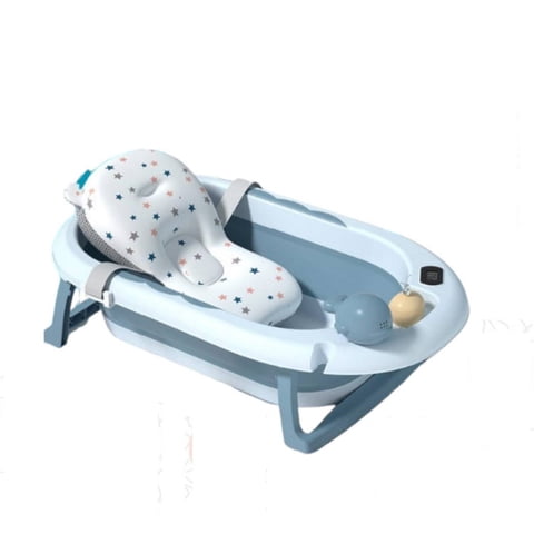 Babyluna - Tina Bañera Plegable Bebé Con Termómetro Y Cojín Azul