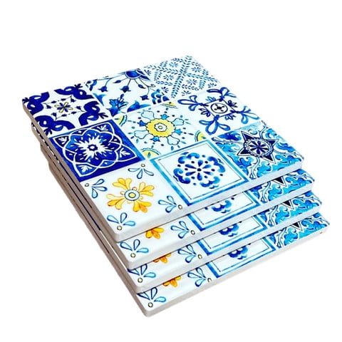 Oem - Set 4 Posavasos Colorido Ceramica Y Corcho 4 Piezas Cuadrado M6 | Lider Electrohogar