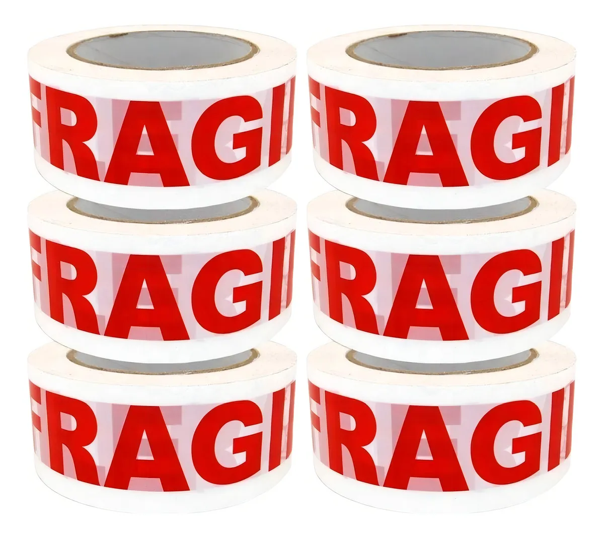 Cinta adhesiva "frágil" de 48mm x 40m. pack de 6 unidades. ideal para proteger productos delicados en tus envíos.
