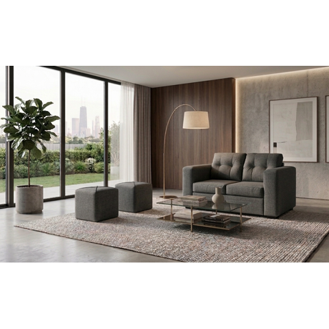 Focus - Sofá Venecia + 2 Puff Tela Grafito