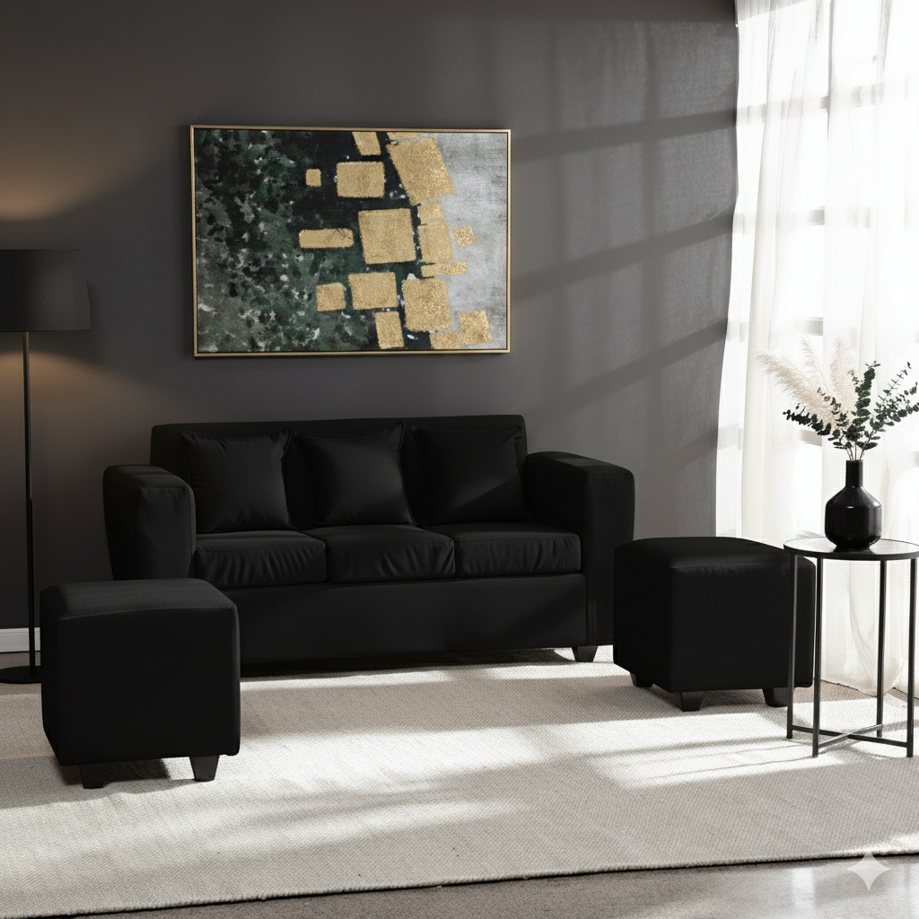 Construcsofá - Living Aurelia 3 Cuerpos + 2 Pouf Tela Negro