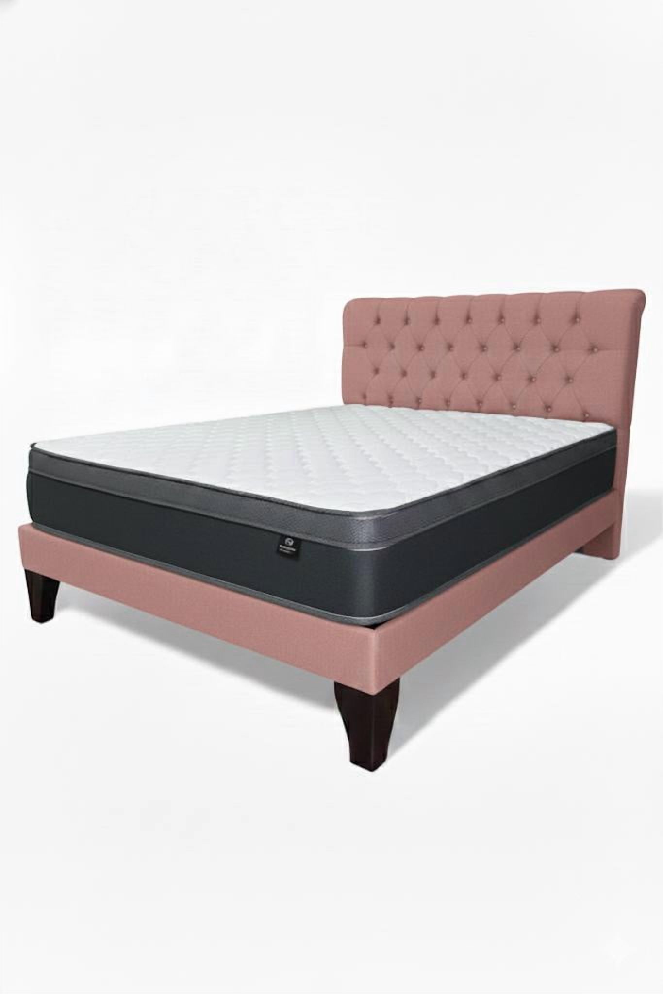 Cama europea de 2 plazas con colchón ortopédico, base dividida y respaldo acolchado. diseño moderno, firmeza ideal y materiales duraderos para un descanso cómodo y un dormitorio elegante.
