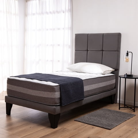 Colbox - Cama Europea Valencia P + Respaldo Atenas 1 Pl Felpa Gris Medio | Lider Electrohogar