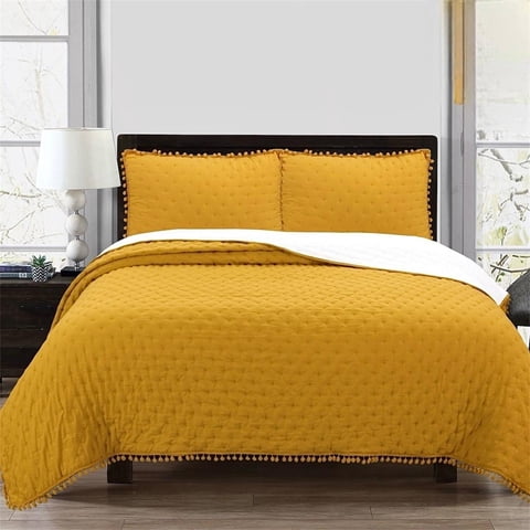 Todo Hogar Santiago De Chile - Cubrecama De Algodón Con Pompones 1.5P - Mostaza | Lider Electrohogar