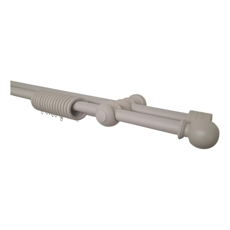 Metalhsa - Set Barras Para Cortina Doble 25/25 Mm De Madera 1,50 Mt Color Gris Terminal Bola