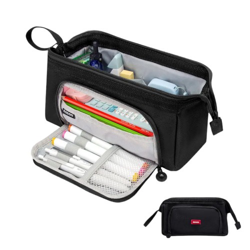 Este estuche para lapicera está hecho de tela oxford impermeable de alta calidad, que es fácil de limpiar, resistente al desgaste y duradera. el suave acolchado interior y las resistentes cremalleras protegen los elementos interiores, como lápices y borradores, del polvo, los arañazos y los golpes. los tiradores de cremallera de acero inoxidable sólido de primera calidad garantizan un fácil agarre y control. adecuado para uso a largo plazo. estuche para lapiceras con cremallera con 2 compartimentos en total, puede satisfacer sus diversas necesidades, puede almacenar y organizar hasta 100 bolígrafos o lápices, así como tijeras, notas adhesivas, calculadoras, reglas y grapadoras, etc., perfecto para el personal con toneladas de suministros. la elegante cremallera portátil hace que sea más fácil y rápido almacenar artículos y más fácil de abrir y cerrar. abra este lindo estuche para lapicera desde la cubierta superior o frontal y tiene 4 ranuras para los bolígrafos que usa con frecuencia. el compartimento inferior está equipado con ranuras de bolsillo de malla, en las que se pueden guardar cómodamente calculadoras, tijeras y otros artículos.