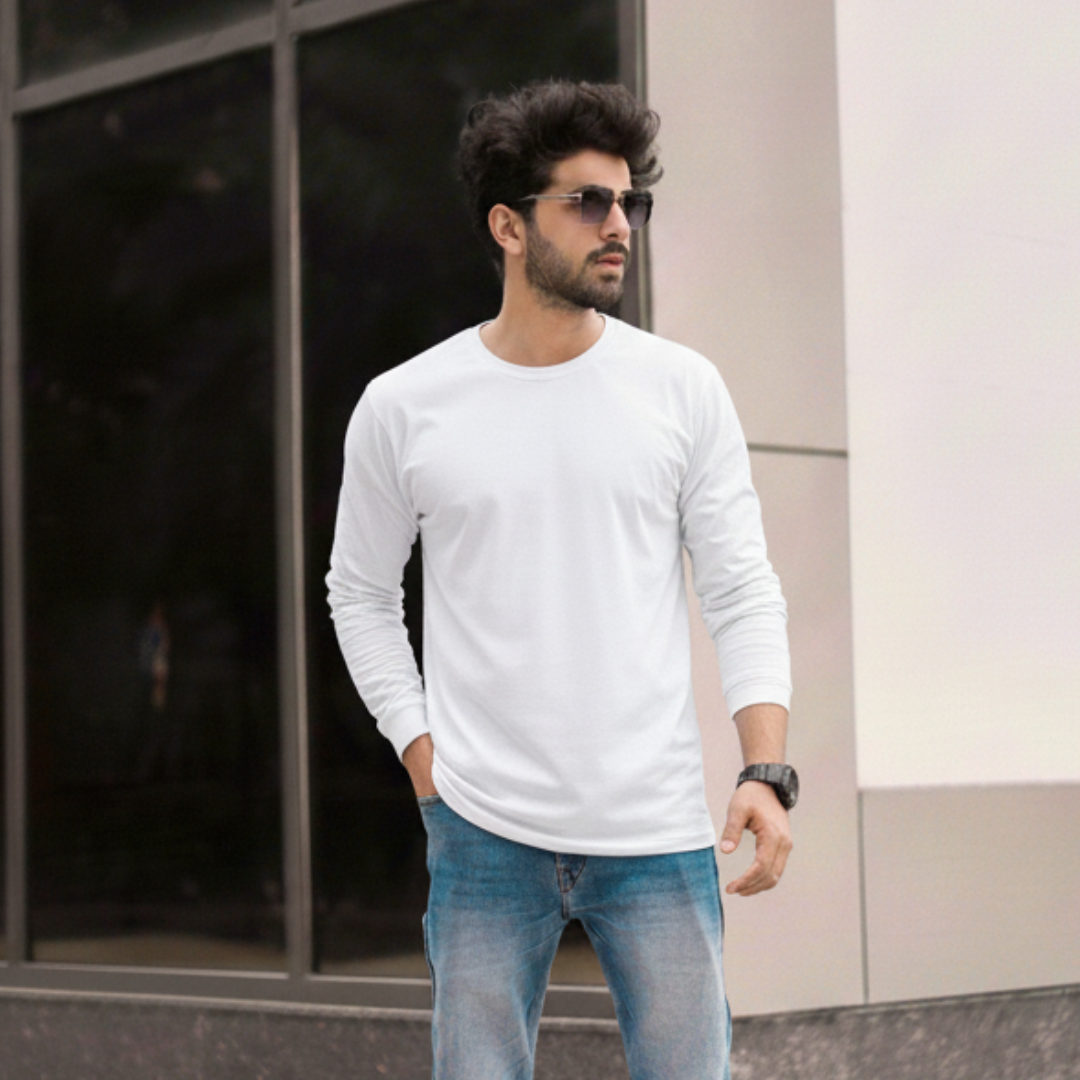 T-World - Polera Algodón Manga Larga Cuello Redondo Uv Antipilling Blanco | Lider Electrohogar