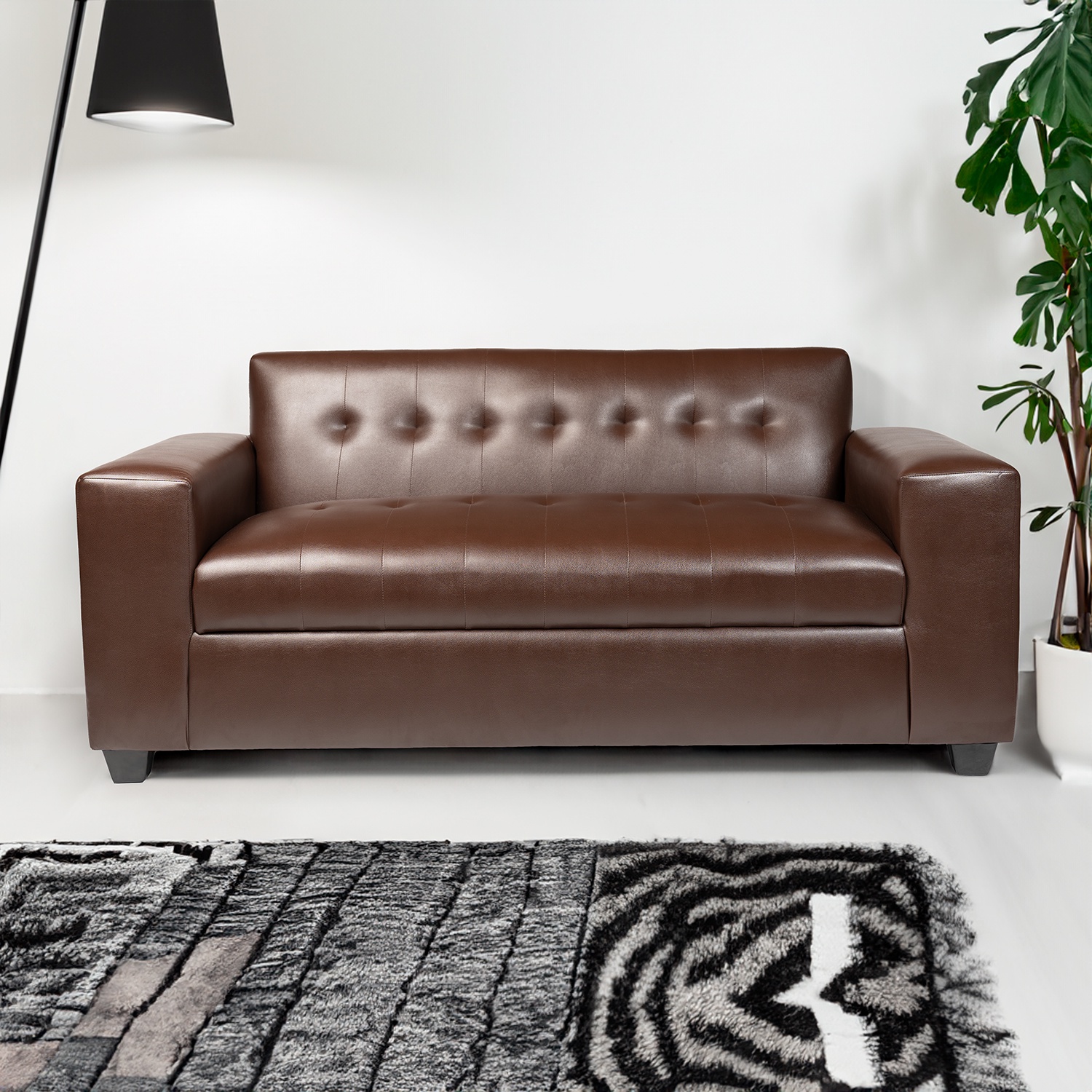 Muebles New - Sofa Tres Cuerpos Ecocuero Chocolate