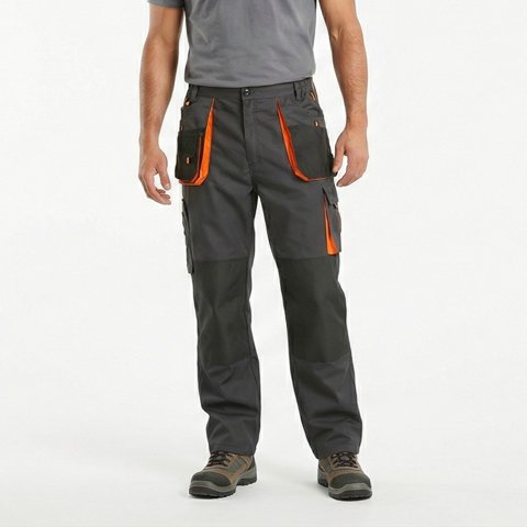 T-World - Pantalón Reflectante Bicolor Alta Visibilidad Clase 2 Hombre Naranjo/Gris