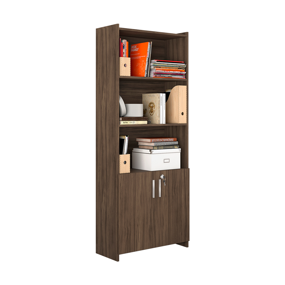 Librero ideal para tus espacios de oficina, trabajo o estudio. cuenta con dos puertas inferiores (una con cerradura y llave ), ademas de dos repisas para organizar todo tu material de trabajo, otorgando un espacio más organizado.
