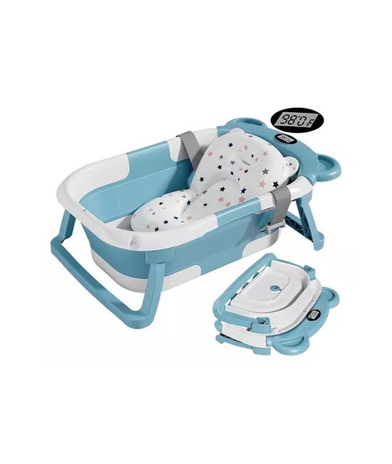 Babyluna - Tina Bañera Plegable Bebé Con Termómetro Y Cojín Azul
