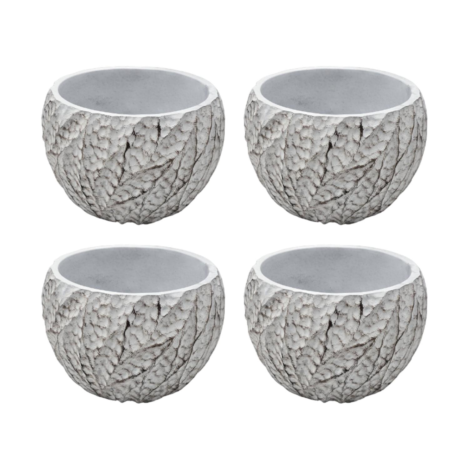 Fliperex - Set 4 Macetero Maceta Acabado Cemento Relieve Hojas Blanco S | Lider Electrohogar