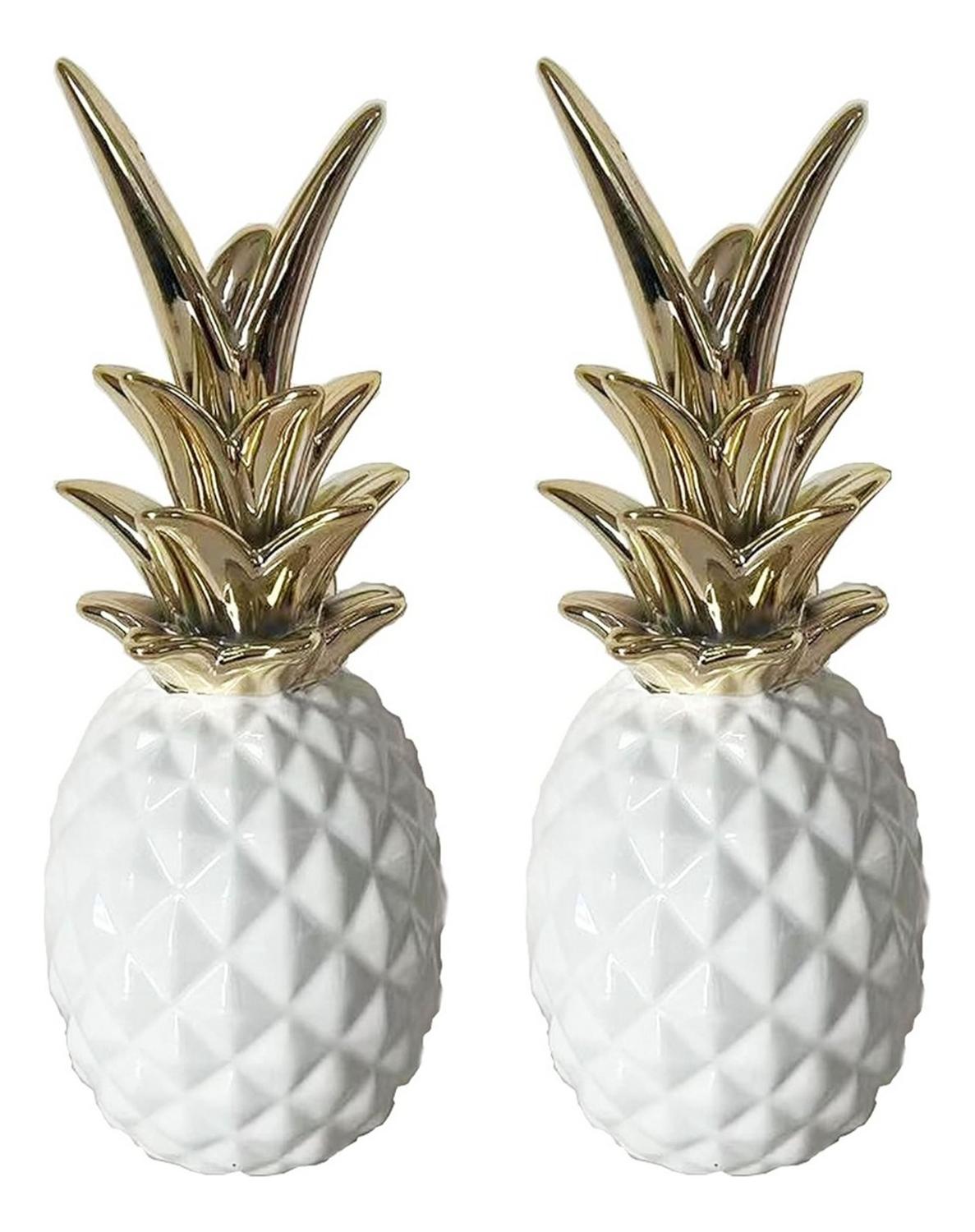 Fliperex - Set 2 Figuras Piñas Decorativas De Ceramica Adorno Decohogar Blanco | Lider Electrohogar