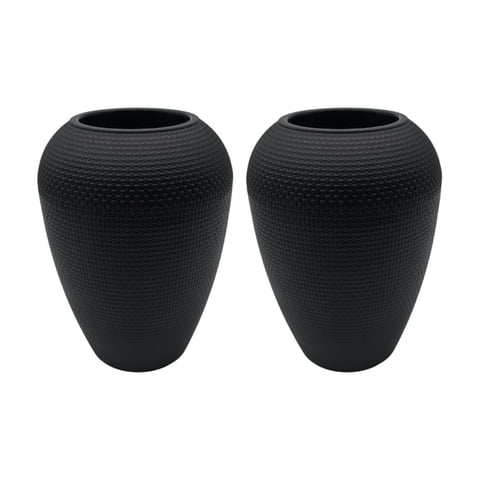 Fliperex - Set 2 Maceteros Plastico Redondo Ovalado Moderno Textura M Negro