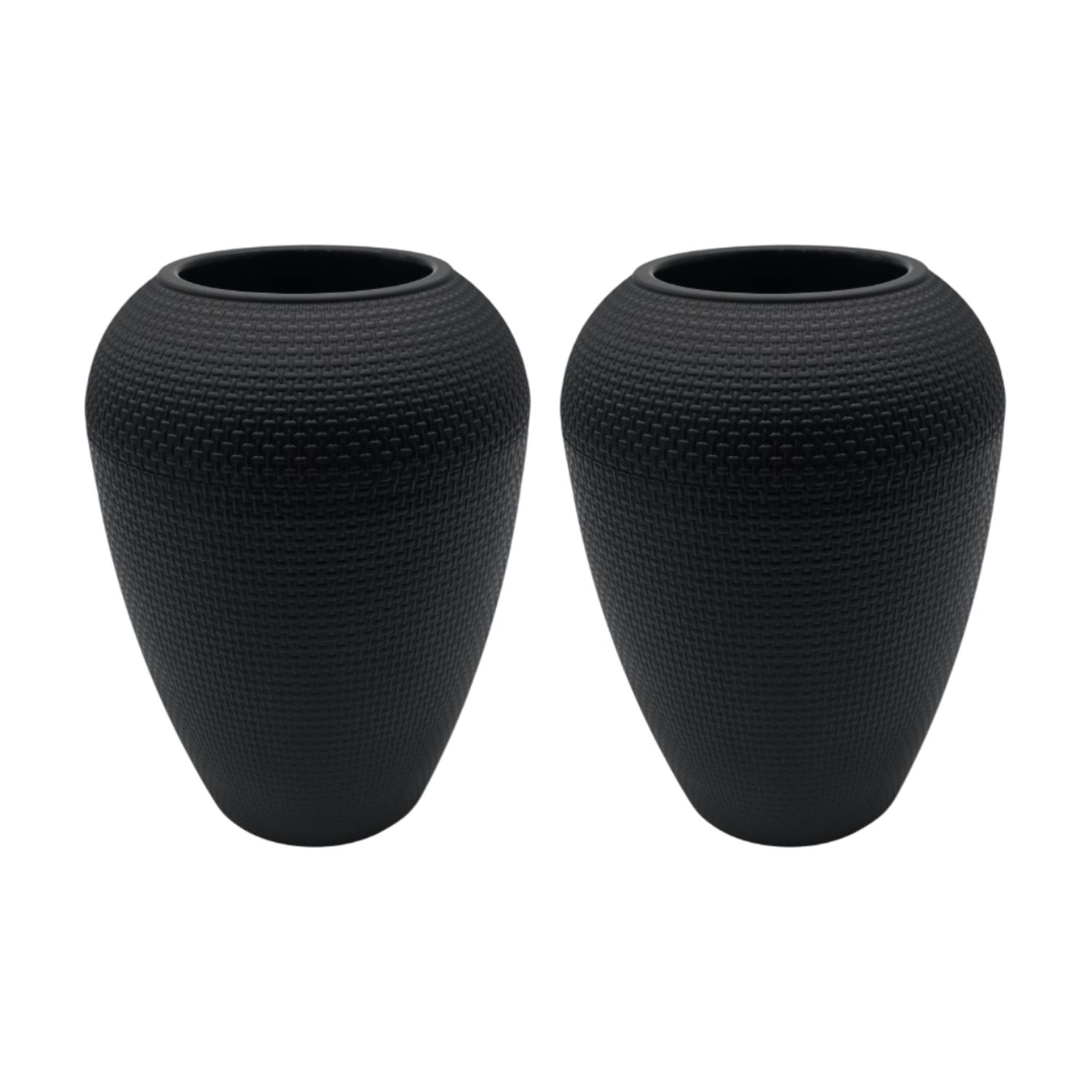 Fliperex - Set 2 Maceteros Plastico Redondo Ovalado Moderno Textura M Negro | Lider Electrohogar