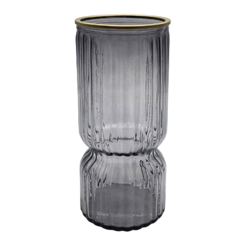 Fliperex - Florero Decorativo De Vidrio Con Diseño Borde Dorado Gris | Lider Electrohogar