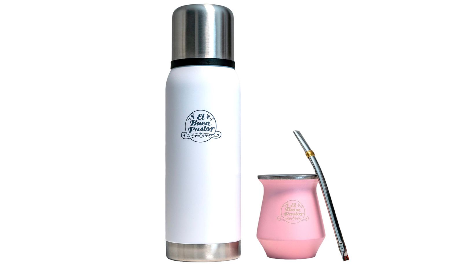 El Buen Pastor - Mate Flora Acero Inoxidable Blanco Con Bombilla