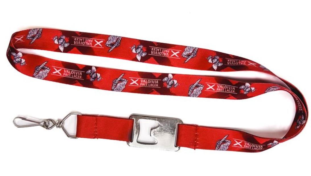 Lanyard con destapador incorporado y el logotipo de la cerveza valdivia pale lager.