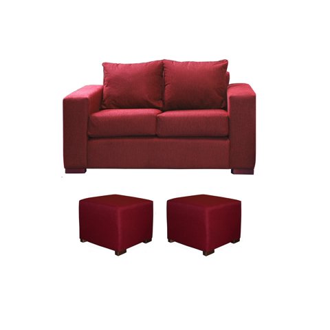 Dkora - Sofá Cedric 2 Cuerpos + 2 Pouf Berry
