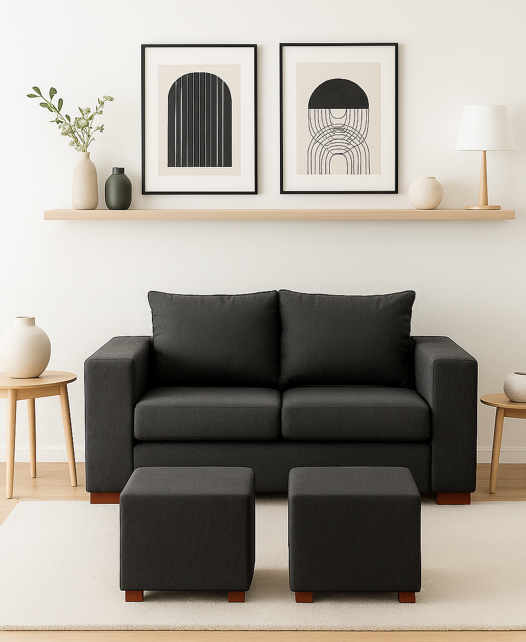 Dkora - Living Cedric 2 Cuerpos + 2 Pouf Café