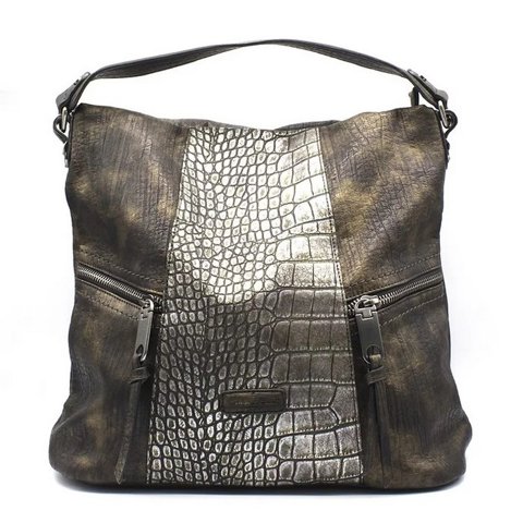 Cartera Agua De Coco Gris Reptil Metal