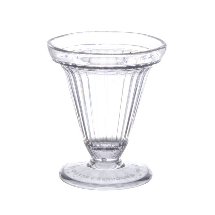 Sirva bolas de helado rociadas con chocolate caliente y caramelo en este get icm-25-cl. con crestas decorativas y una base gruesa, esta taza es elegante y duradera. resistente a roturas, este vaso tiene un diseño cristalino que muestra sus coloridos postres exclusivos en el interior.