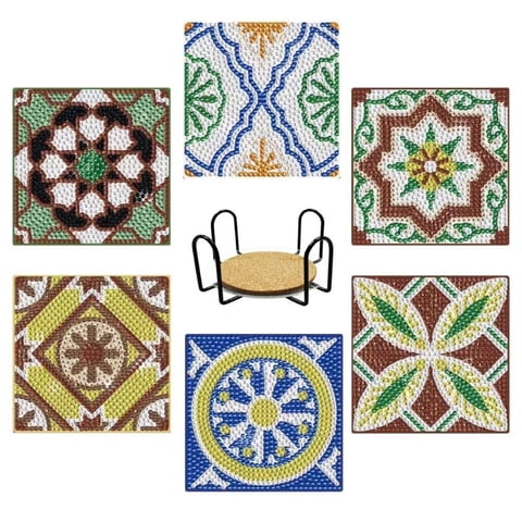Genérico - Set 7 Posavasos Pintura Diamante Terracota