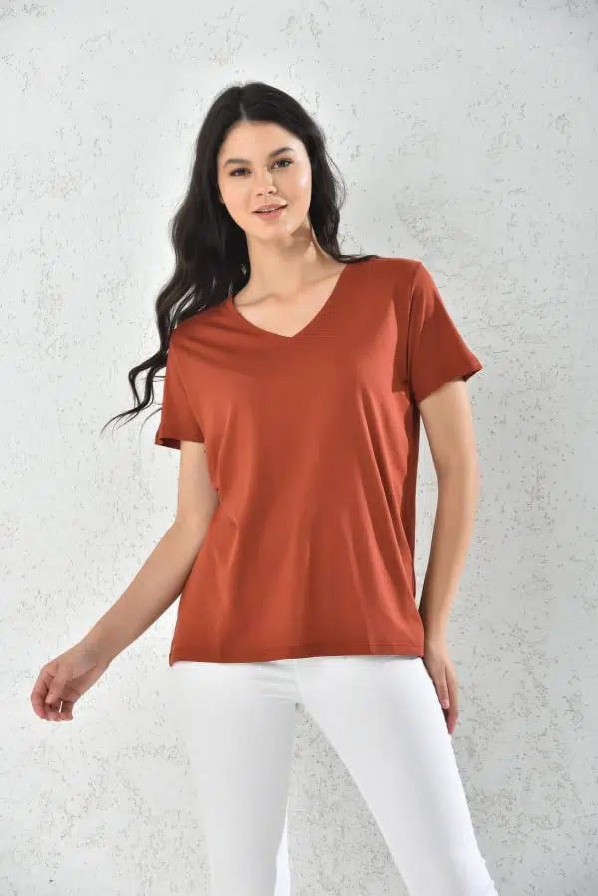 Home Fashion - Polera Mujer Terracota Manga Corta Cuello V Talla S | Lider Electrohogar