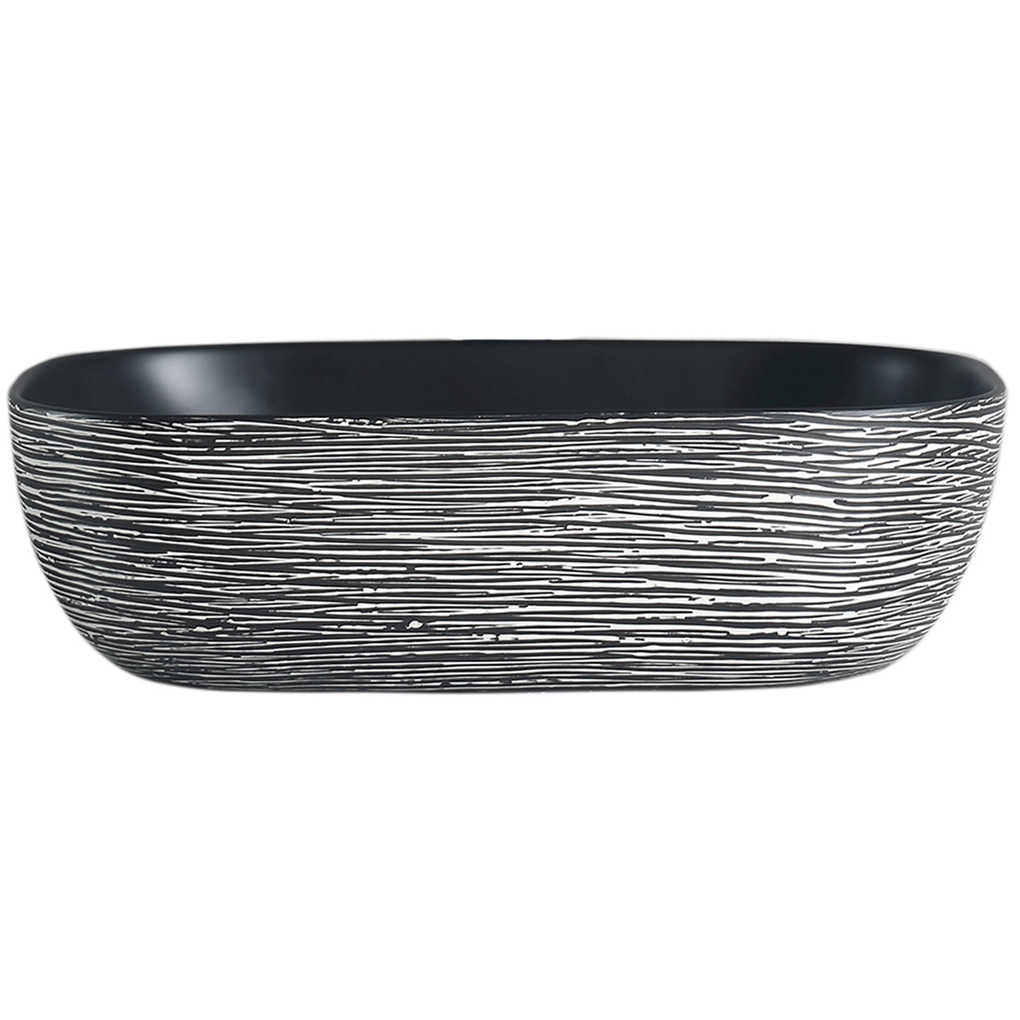 Lavamanos decorativo sobreponer para baño, color negro con rayas blancas