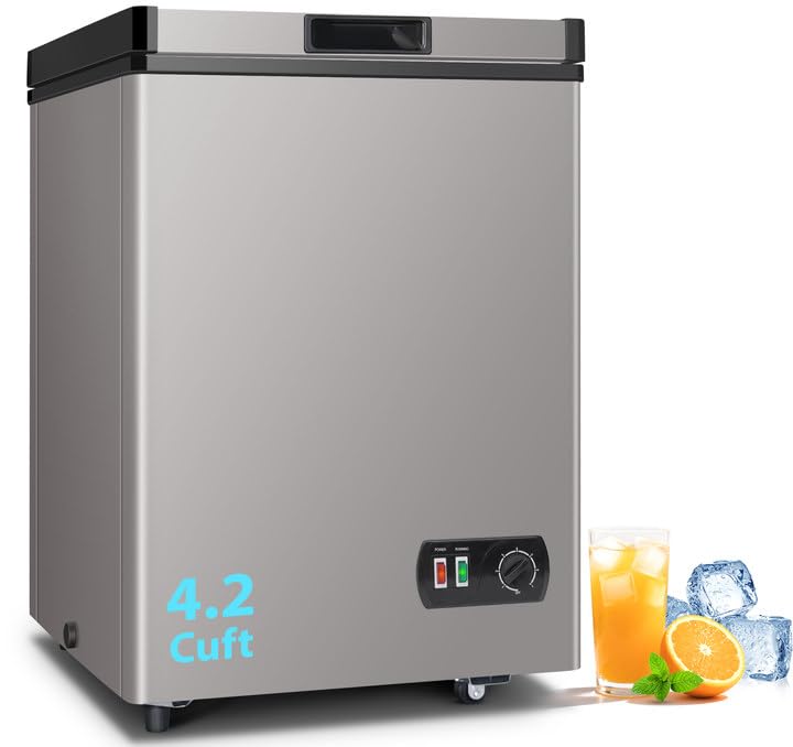 ¿por qué eliges este congelador de cofre? 7 modos de temperatura: puedes elegir fácilmente el ambiente de baja temperatura más adecuado para tu comida, lo que hará que la comida sea más fresca y la mantendrá fresca durante más tiempo. tamaño compacto: este congelador profundo tiene una forma compacta y se puede integrar fácilmente en una variedad de escenas sin ocupar demasiado espacio. gran capacidad: tiene una capacidad de 4.2 pies cúbicos, suficiente para que puedas poner todo tipo de alimentos que tu familia necesita. enfriamiento uniforme: este congelador doméstico tiene un tubo de condensador en forma de anillo, que puede enfriar la comida uniformemente y mantener la comida fresca. aislamiento más fuerte: el compartimento de este congelador de pecho adopta tecnología de espuma múltiple, que puede prevenir mejor la pérdida de aire frío y tener un mejor efecto de almacenamiento en frío. en el estado de apagado, puede mantener los alimentos frescos durante más tiempo que los congeladores con compartimentos de espuma ordinarios. polea portátil: este congelador profundo tiene una polea conveniente en un lado en la parte inferior, que es más fácil de usar que el congelador ordinario. puedes deslizar fácilmente el congelador en cualquier lugar. este es un congelador de pecho que te queda muy bien. ¿de qué estás dudando? recordatorio: este congelador requiere 24 horas de tiempo de reposo antes de su uso o después de que se mueva. de lo contrario, las partes internas pueden desgastarse, reduciendo así la vida útil del congelador. en la caja: 1 congelador de pecho. 1 cesta de plástico. 1 manual del propietario. información del producto: modelo: bd-108l nombre del artículo: congelador de pecho voltaje nominal: 115v potencia nominal: 62w capacidad: 4.2cu.ft temperatura de congelación: - 11.4 °f ~ 10.2 °f consumo de energía: 0.501whh/24h tamaño del paquete: 22.8x22.6x32.3inch si hay algún problema, por favor ponte en contacto con nosotros a tiempo, lo trataremos por ti tan pronto como sea posible. - 【7 temperaturas de congelación ajustables y tubo de condensación en forma de d】: congelación profunda, refrigera y mantiene fresco. no importa lo que quieras, este congelador te recibirá. su rango de regulación de temperatura es de 11.4 °f ~ 10.2 °f, lo que satisfará las demandas de la mayoría de las personas bajo diferentes temperaturas ambientales. al mismo tiempo, el tubo de condensación en forma de d puede reducir de manera más efectiva la temperatura en el congelador de pecho. te permite reiniciar y enfriar sin esperar demasiado. satisface tu uso durante todo el año - tamaño compacto con 4.2 pies cúbicos. capacidad: todas las funciones están diseñadas en un tamaño tan compacto (22.8 x 22.6 x 32.3 pulgadas). la gran capacidad (4.2 pies cúbicos) no ocupará demasiado espacio mientras garantiza que puedas almacenar suficiente comida. este congelador profundo es muy adecuado para apartamentos pequeños, oficinas y otros espacios pequeños. si alquilas con otros, ya no necesitas usar un refrigerador con otros - excelente aislamiento para evitar el desperdicio de energía: además del excelente efecto de congelación, llenamos este pequeño congelador profundo con una buena espuma de aislamiento térmico, manteniendo el aire frío en el interior mientras bloqueamos la conducción de calor externa en el congelador de pecho. por lo tanto, el consumo mínimo es de solo 0.501kwh/24h. ¡te ayuda a ahorrar electricidad! si alquilas con otros, no tienes que preocuparte por la insatisfacción de otros compañeros de cuarto debido al desperdicio de energía - funciona como un caballero (súper silencioso): ¿tienes miedo de ponerlo en tu habitación pequeña para producir demasiado ruido y calor para perturbar tu descanso y trabajo? ¡nunca te preocupes! este pequeño congelador de pecho está especialmente diseñado para este propósito. su eficiente refrigeración y excelente aislamiento térmico hacen que su compresor solo funcione varias veces